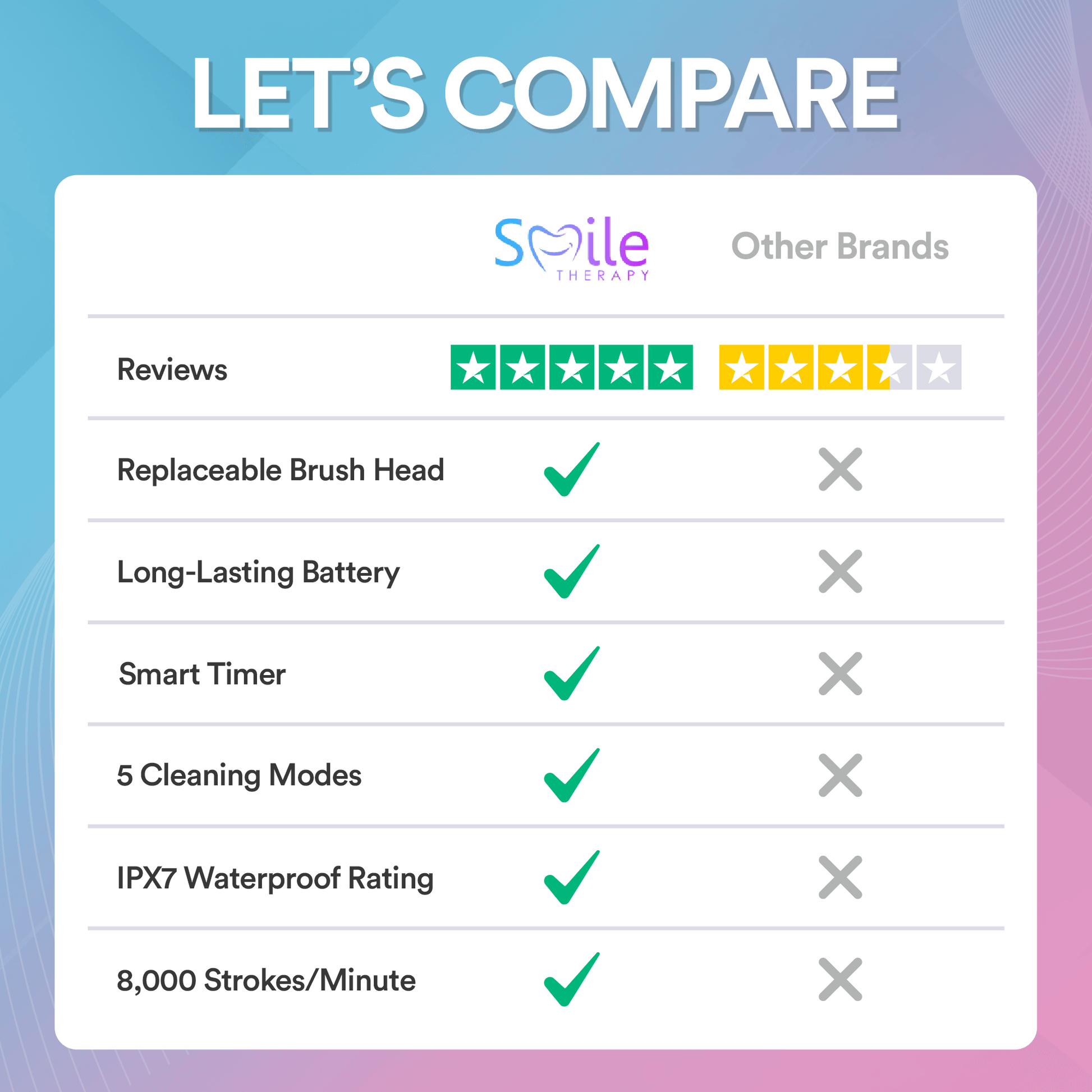 ✓ 8,000+ brush strokes per minute for a thorough clean.