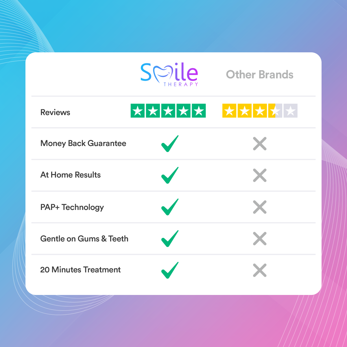 "WORKS LIKE A CHARM, SEEN RESULTS ALMOST INSTANTLY. MUCH BETTER THAN THOSE COMPANIES THAT CHARGE EXORBITANT FEES FOR TEETH WHITENING"